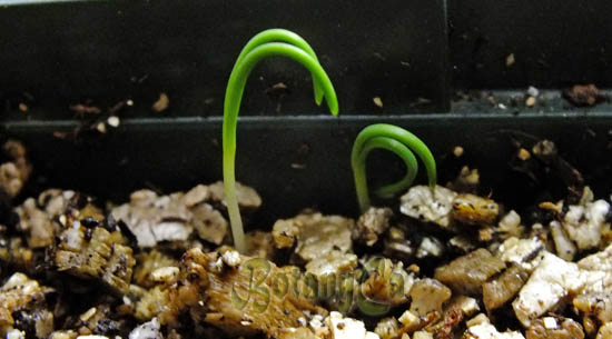 Ephedra distachya seedlings – seeds soaked for 5/6 days with radicles emerged, first shoots after 6/7 more days